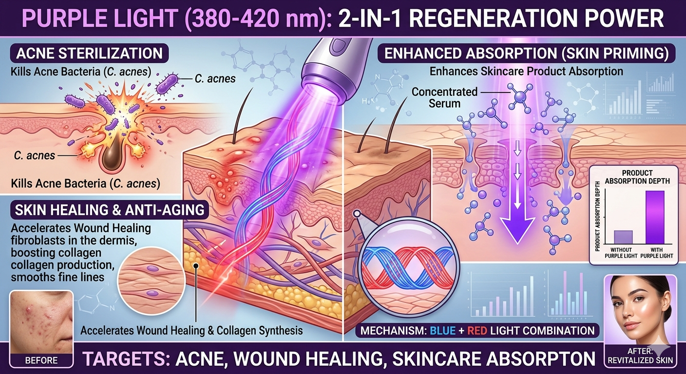 5. แสงสีม่วง (Purple Light: 380-420 nm) - "พลังฟื้นฟู 2-in-1"