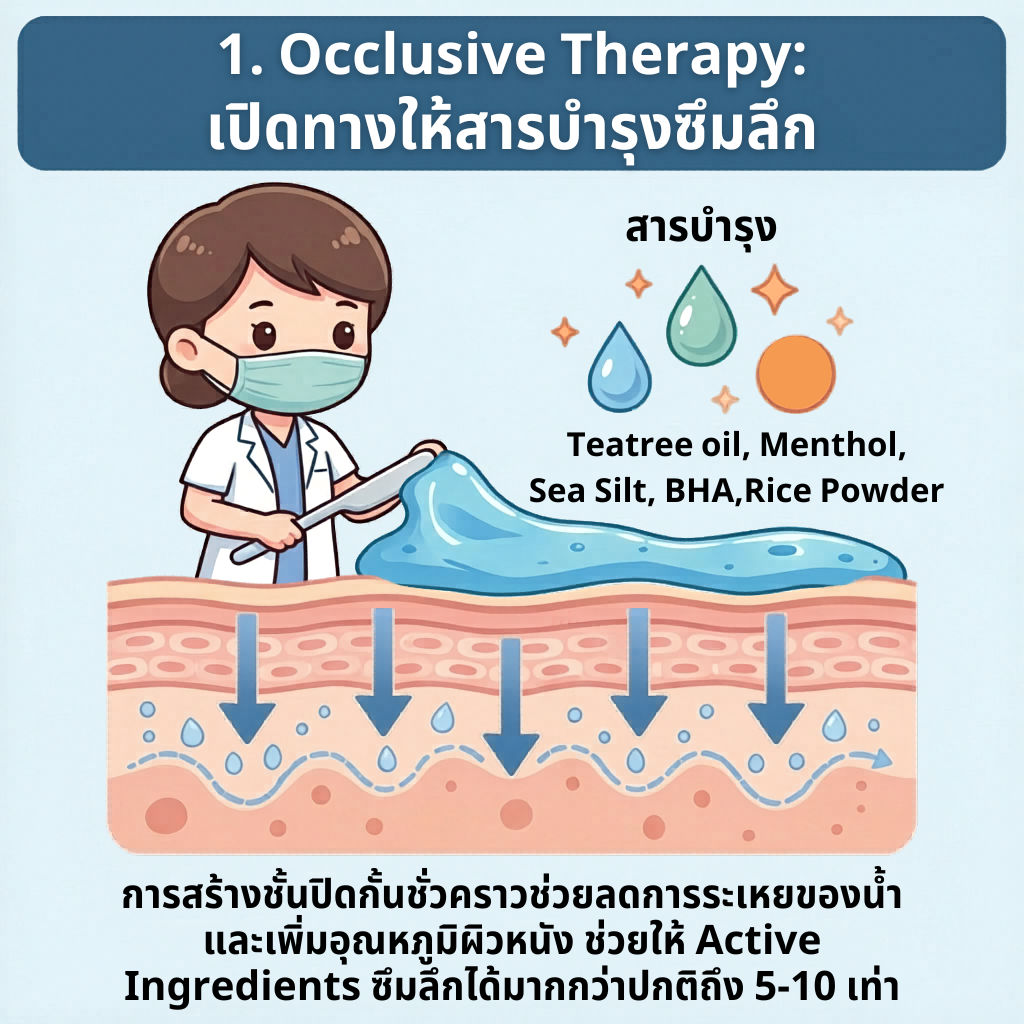 กลไกที่ 1: Occlusive Therapy – ผลักสารบำรุงลึกกว่าเดิม 10 เท่า